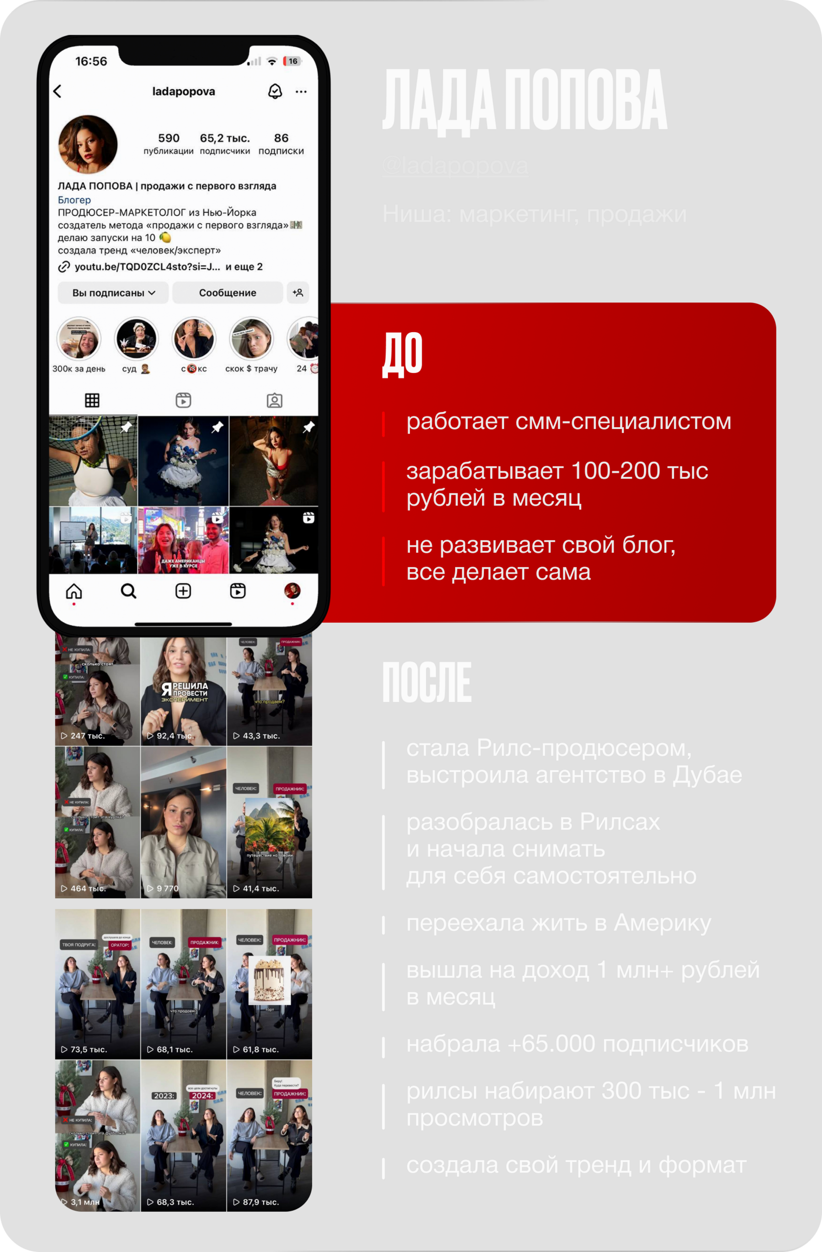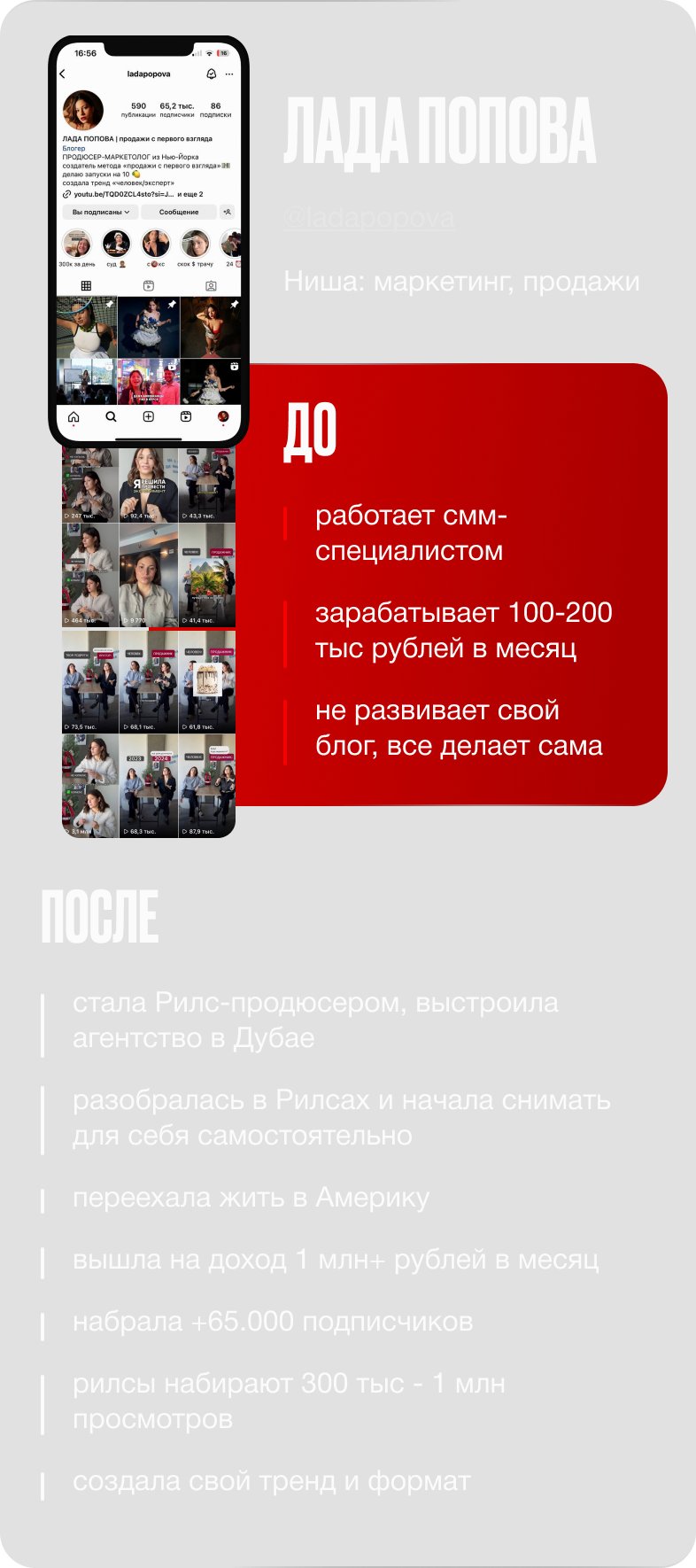 набрала +100.000 тыс подписчиков через Reels с нуля