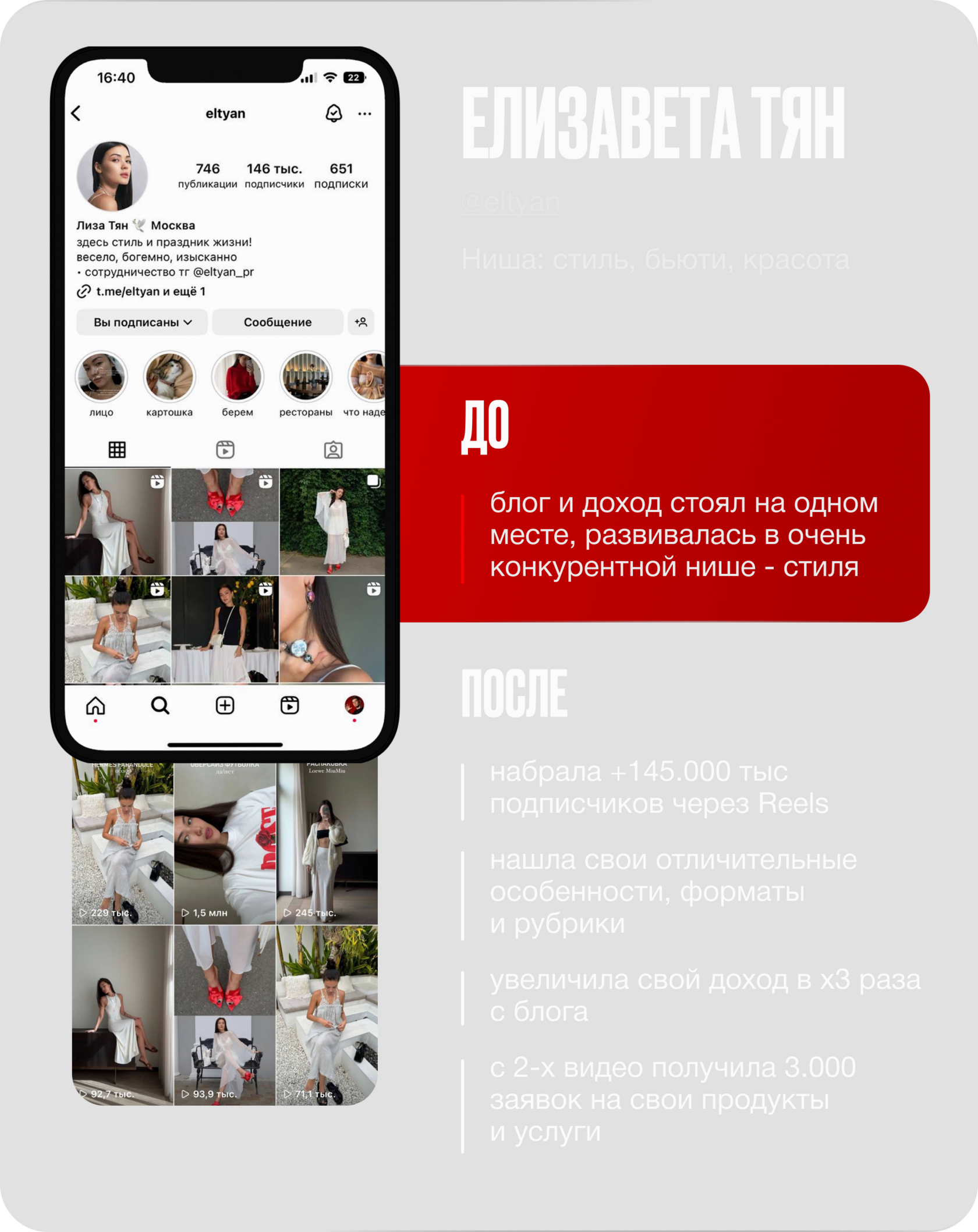 набрала +145.000 тыс подписчиков через Reels